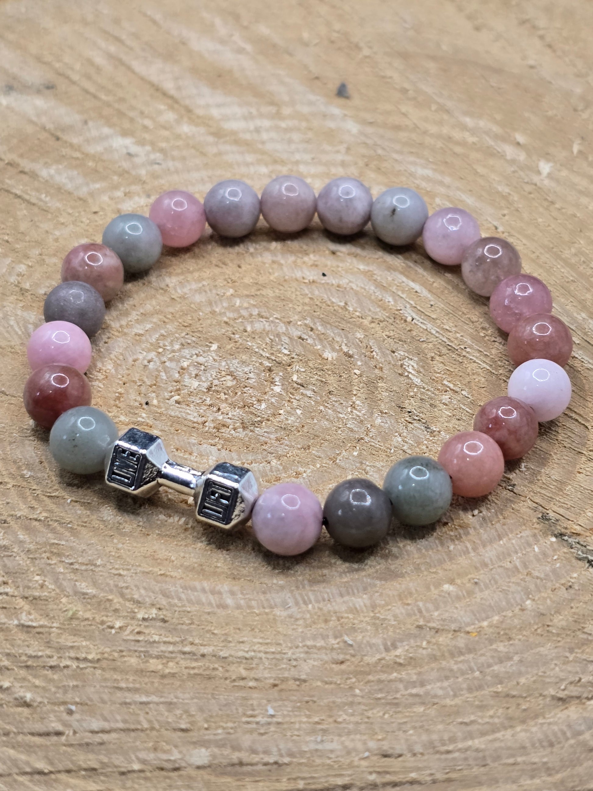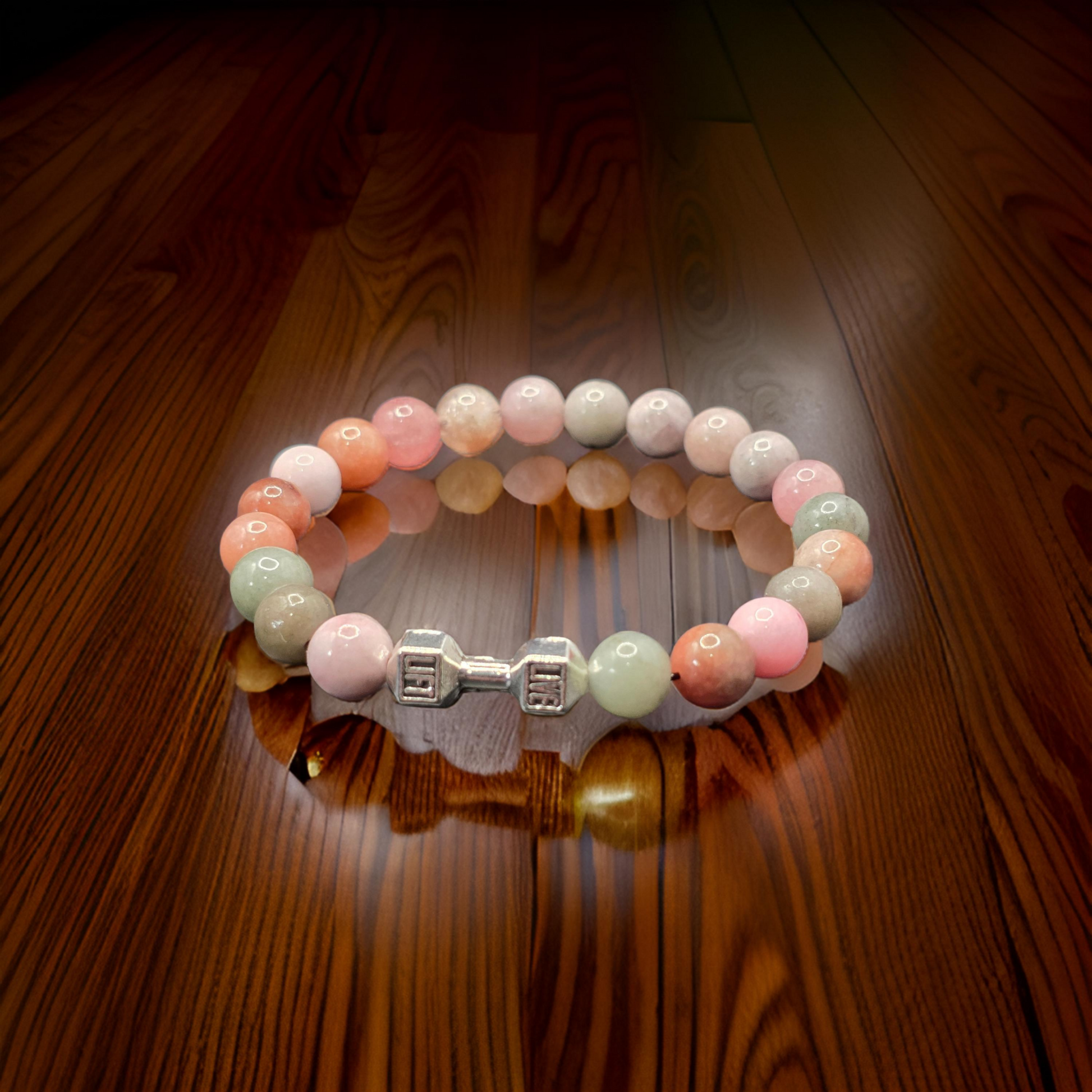 Show off your passion for fitness and fashion with our Women's Dumbbell beaded elastic bracelet! Handmade in the UK, this pink glass beaded bracelet features a dumbbell charm and "Live-Lift" slogan, inspiring you to reach your fitness goals while adding a stylish touch to any outfit. It's the perfect accessory for any gym goer or fitness enthusiast.